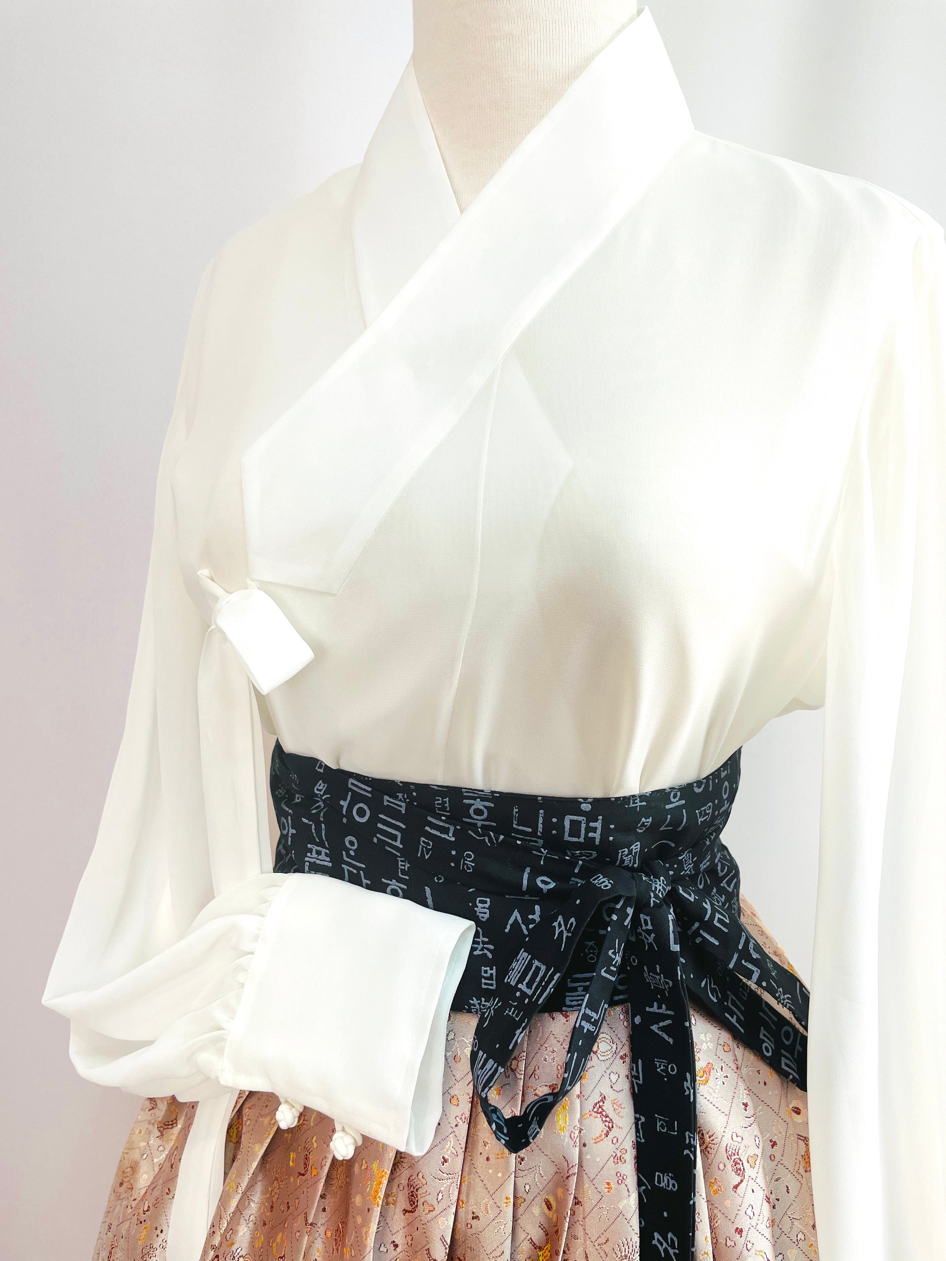 Soft silhouette hanbok top made of chiffon that drapes beautifully.