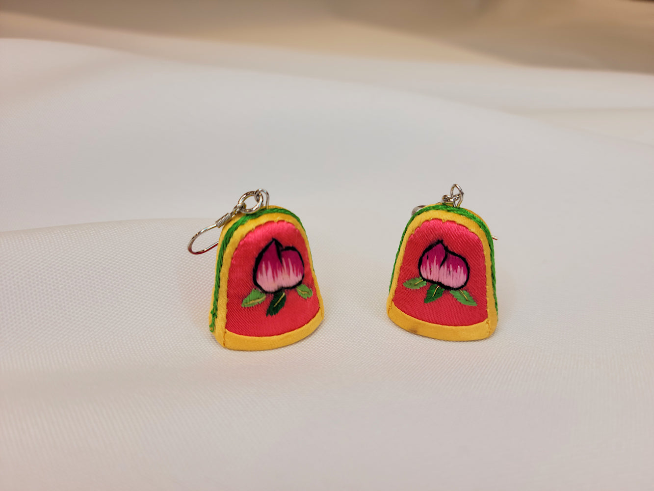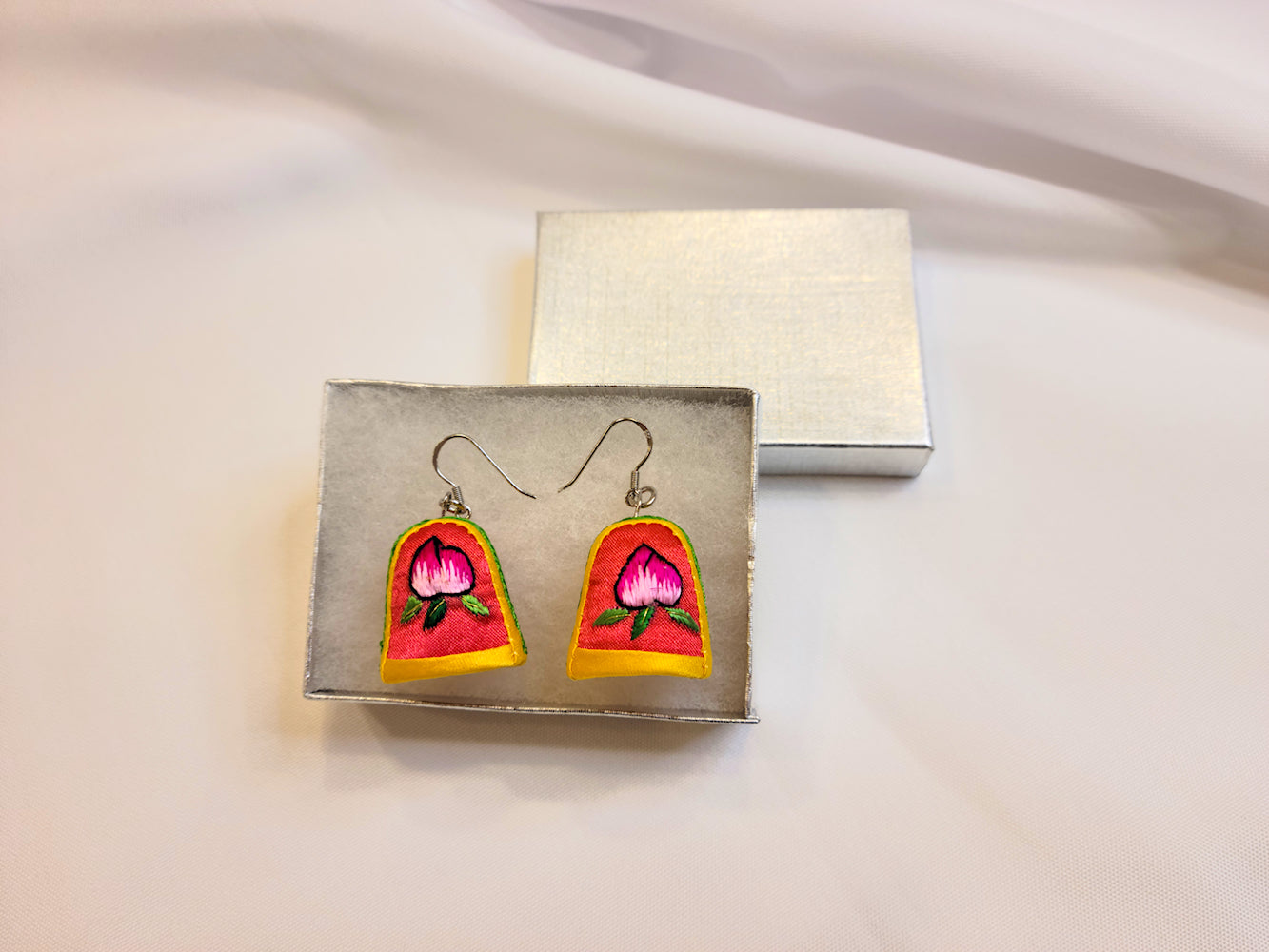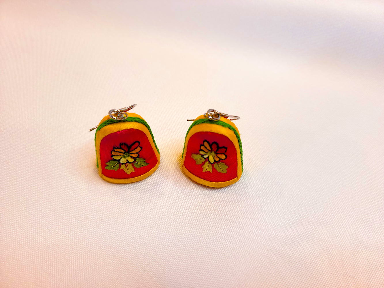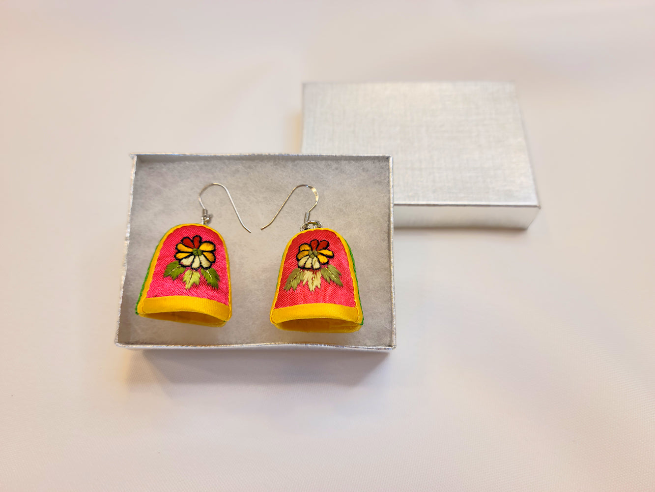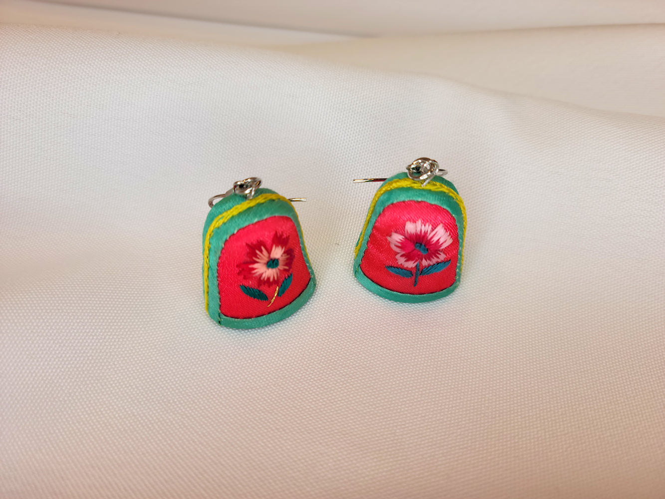 Earrings made with real hand-embroidered thimbles used for sewing. Due to the nature of hand-embroidered details, each earring is a little bit different and unique.