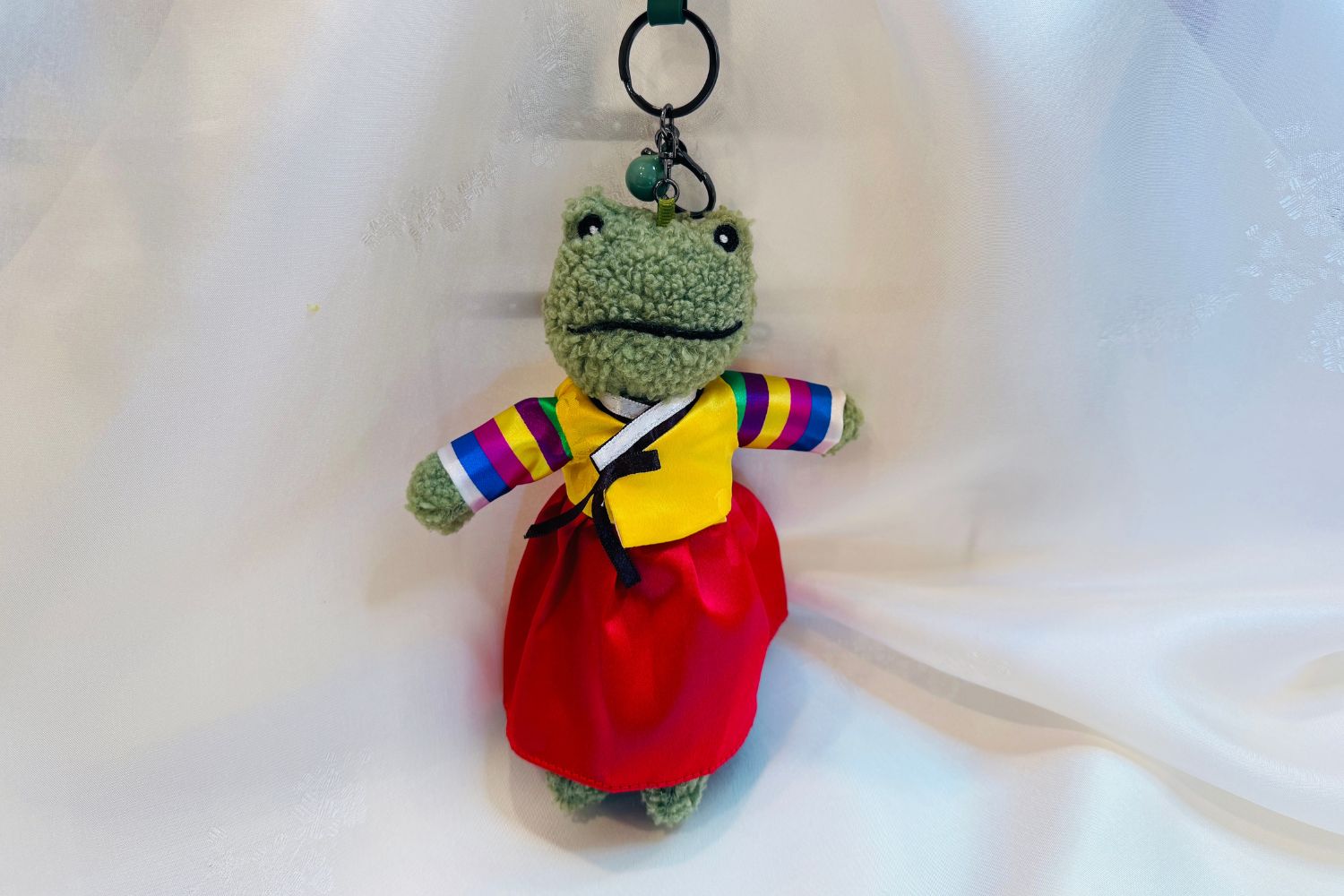 Invite prosperity and renewal into your space with this charming hanbok-dressed frog! Symbolizing good luck and transformation, it blends tradition and whimsy—perfect for gifting or adding cultural flair to your décor. Handcrafted with care and unique character, it's a touch of tradition with meaning.