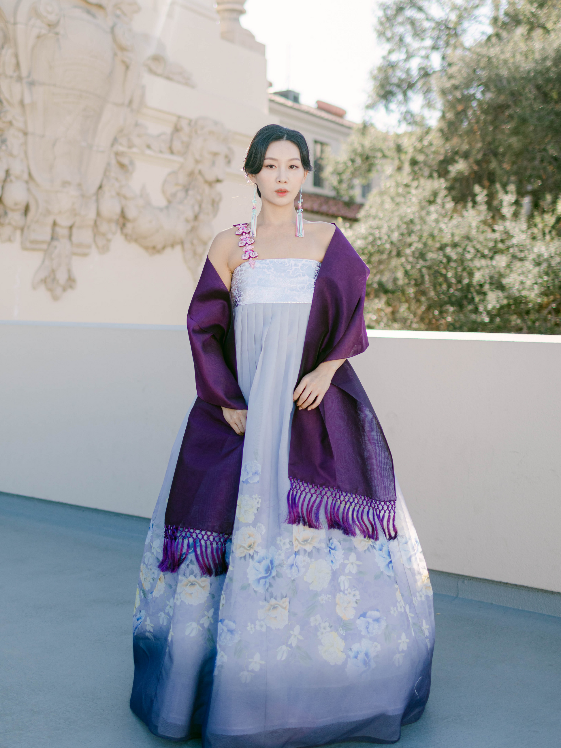 Soft gradient floral chima with plethora of flowers! Its simplicity pairs nicely with our Eggplant Silk Shawl from our Accessories & Gifts collection.