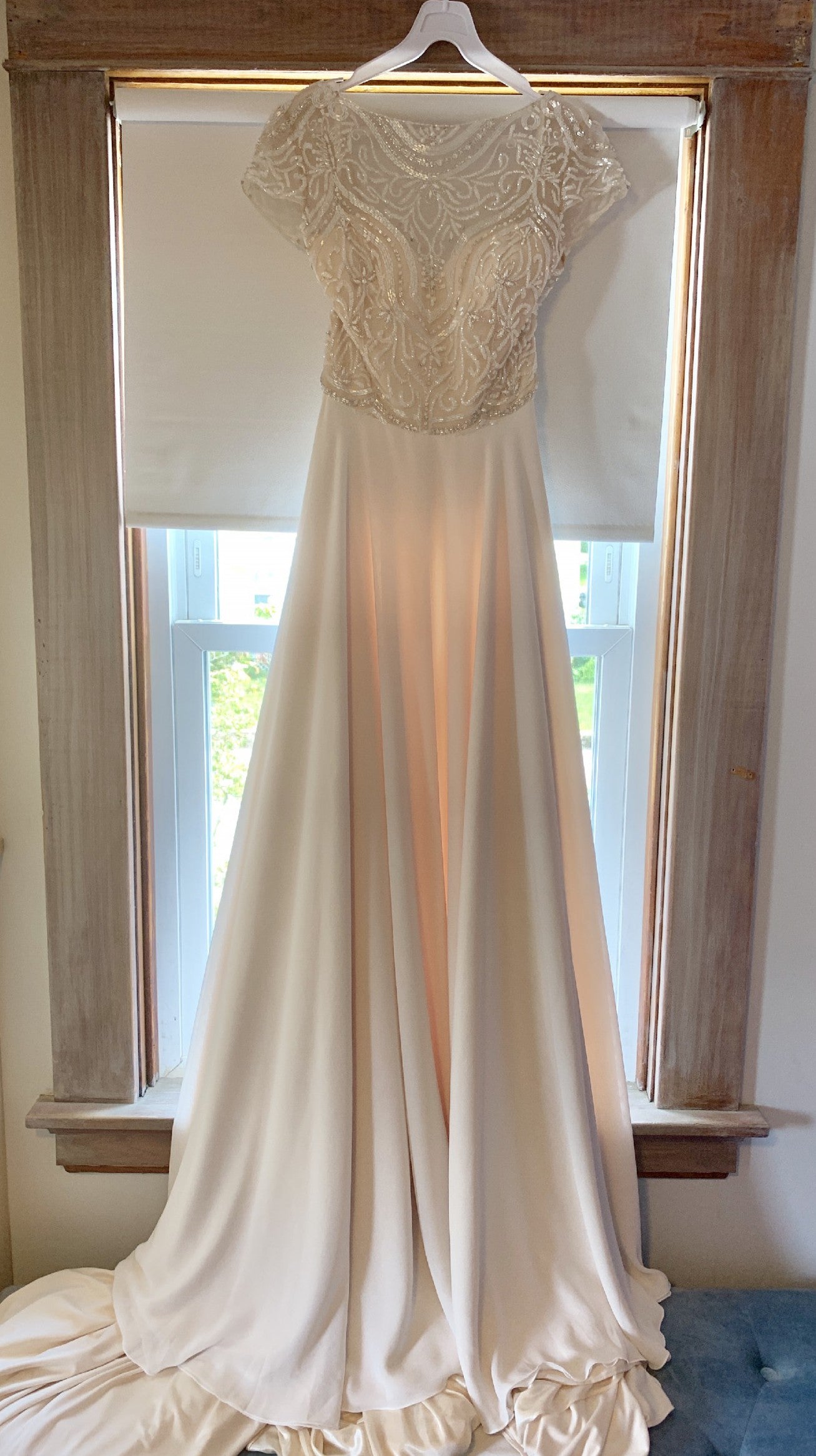 Brand new, Ivory/Nude, Size 8 sample for sale. (Can be altered down up to a size 0. Alterations are separate)