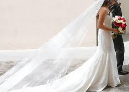 Simple and romantic wedding dress that offers a strapless neckline, delicate lace bodice, and a mermaid skirt. The tulle cape with lace and beaded appliques blend into the train.